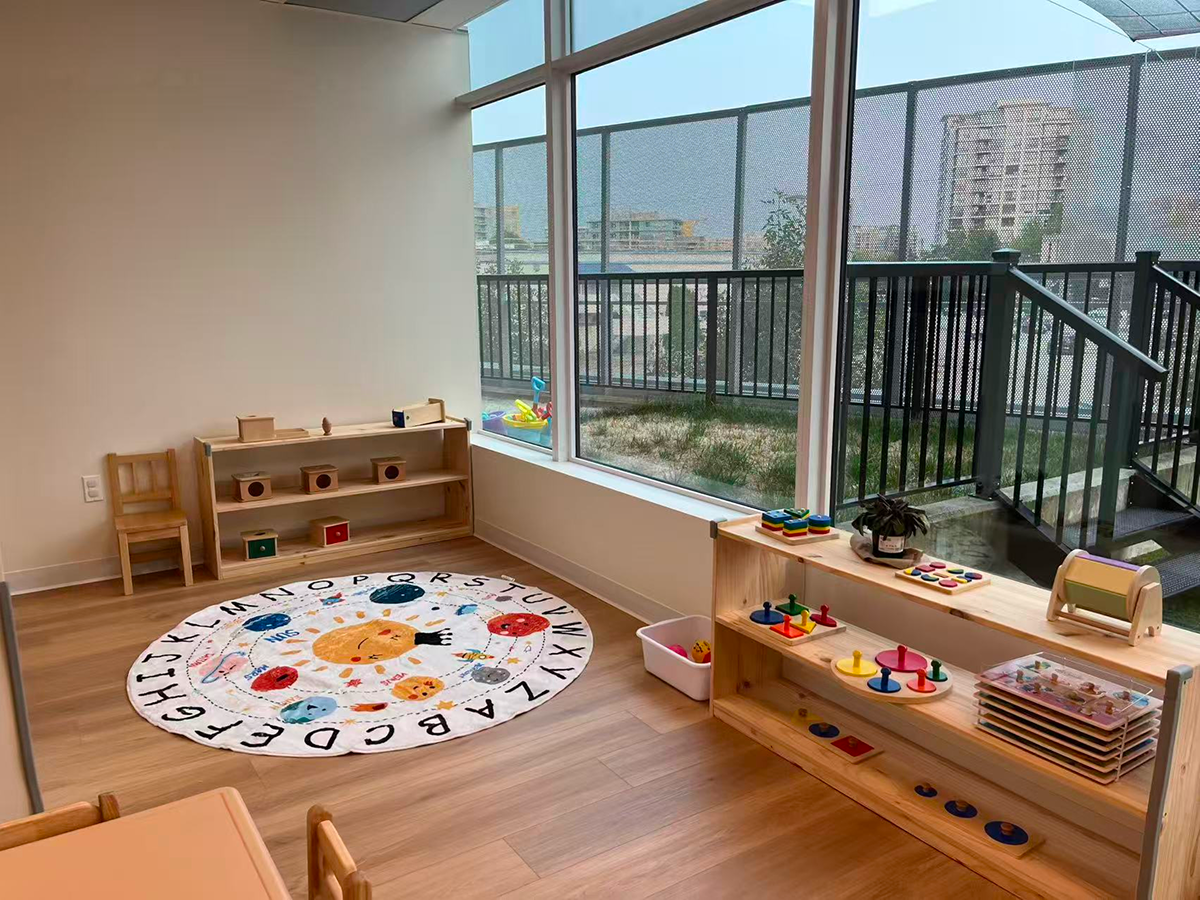 Hands-on learning blends Montessori principles with play-based exploration, inspiring focus and joyful discovery.